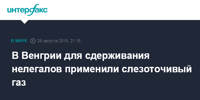 Москва. 26 августа. INTERFAX.RU - Венгерские полицейские применили слезоточивый газ, когда группа из 200 человек в среду попыталась покинуть лагерь беженцев близ города Реско на границе с Сербией, сообщил пресс-секретарь венгерской полиции Сенти Саболч.
