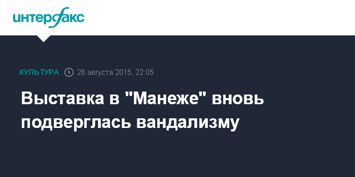 Москва. 26 августа. INTERFAX.RU - Еще одна работа скульптора Вадима Сидура подверглась попытке уничтожения в московском "Манеже", сообщила в среду "Интерфаксу" пресс-секретарь музейно-выставочного объединения "Манеж" Алена Карнеева.