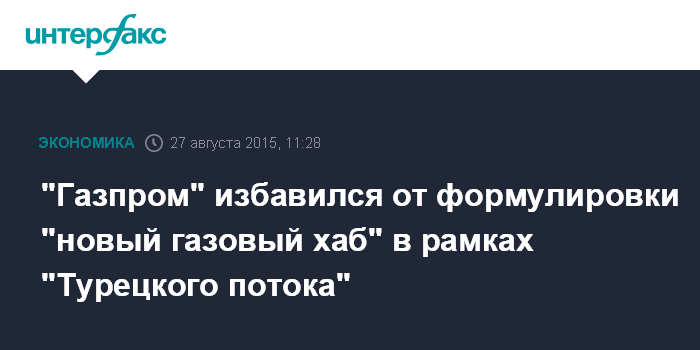 Москва. 27 августа. INTERFAX.RU – "Газпром" изъял формулировку про "новый газовый хаб" на границе Турции и Греции в рамках проекта "Турецкий поток" из свежего квартального отчета.
