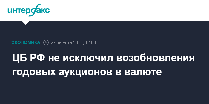 Как заявили "Интерфаксу" в пресс-службе ЦБ, "Банк России будет проявлять гибкость в выборе форм рефинансирования годовой валютной задолженности банков перед Банком России, рассматривая возможность как возобновления годовых валютных аукционов, так и увеличения лимитов месячных и недельных аукционов".