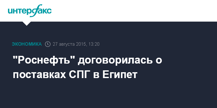 Москва. 27 августа. INTERFAX.RU – Rosneft Trading, "дочка" группы "Роснефть", и Egyptian Natural Gas Holding Company (EGAS) подписали генеральное соглашение о поставках сжиженного природного газа, говорится в сообщении "Роснефти".