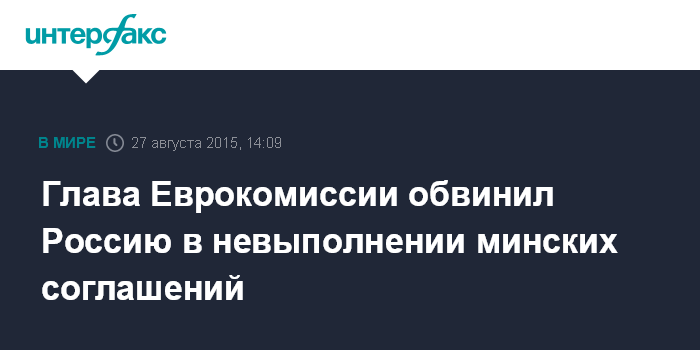 Москва. 27 августа. INTERFAX.RU - Российская сторона не выполняет свою часть минских договоренностей по урегулированию конфликта на востоке Украины, заявил председатель Еврокомиссии Жан-Клод Юнкер.