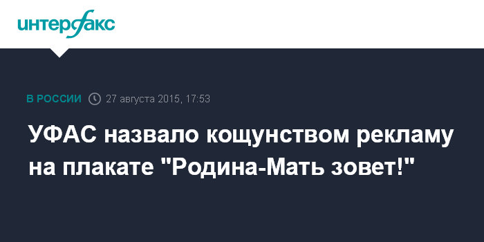 Москва. 27 августа. INTERFAX.RU - Ивановское УФАС России признало недопустимым использование плаката времен Великой Отечественной войны "Родина-Мать зовет!" для рекламы одежды и обуви, сообщает пресс-служба ведомства.