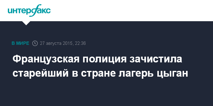 Москва. 27 августа. INTERFAX.RU - Стражи порядка Франции разрушили укрытия цыган, расположившихся в самом старом в стране лагере во французском городе Ла-Курев, сообщило в четверг агентство Associated Press.