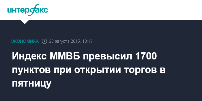 Индекс ММВБ превысил 1700 пунктов при открытии торгов в пятницу