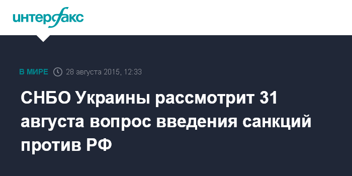 СНБО Украины рассмотрит 31 августа вопрос введения санкций против РФ