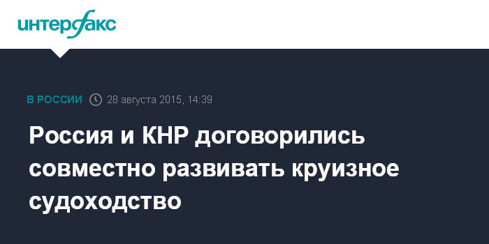 "Стороны договорились изучить возможность открытия новых туристических пассажирских линий с совместным использованием морских пассажирских судов между Дальним Востоком России и Китаем", - говорится в итоговом протоколе, подписанном в пятницу министром транспорта России Максимом Соколовым и министром транспорта Китайской Народной Республики Ян Чуаньтаном (текст протокола есть в распоряжении "Интерфакса").