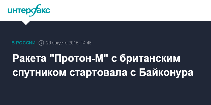 Москва. 28 августа. INTERFAX.RU - Прошел первый после майской аварии запуск ракеты-носителя "Протон-М", сообщили "Интефраксу" в Роскосмосе.