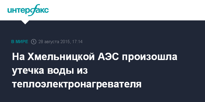 Москва. 28 августа. INTERFAX.RU - В ночь на пятницу на энергоблоке №1 Хмельницкой АЭС во время ремонта произошло протекание воды из открытого для проведения ремонта теплоэлектронагревателя компенсатора давления в помещение гермозоны, но уровень радиации не превысил естественных фоновых значений, сообщает пресс-служба НАЭК "Энергоатом".