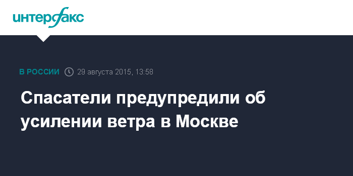Москва. 29 августа. INTERFAX.RU - Во второй половине субботы в Москве ожидается усиление ветра, сообщила пресс-служба столичного управления МЧС России.