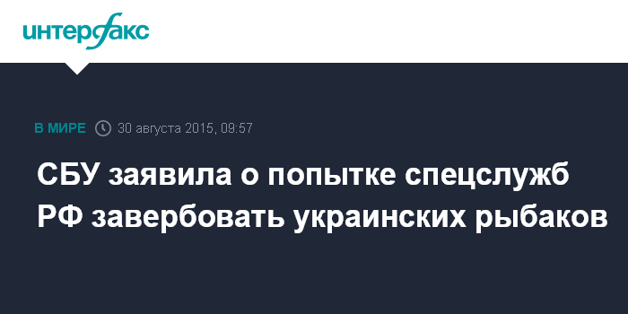 Москва. 30 августа. INTERFAX.RU - Сотрудники спецслужб России хотели сделать своими осведомителями трех украинцев, которые рыбачили неподалеку от границы в Сумской области, сообщил пресс-центр СБУ в воскресенье утром.