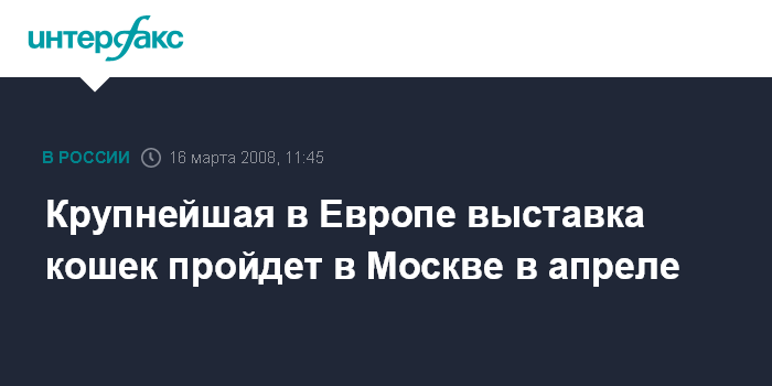 Москва. 16 марта. ИНТЕРФАКС-МОСКВА - 11-я Международная выставка кошек "Содружество" пройдет во Всероссийском выставочном центре 5-6 апреля, сообщила президент Международной фелинологической ассоциации Елена Шевченко.