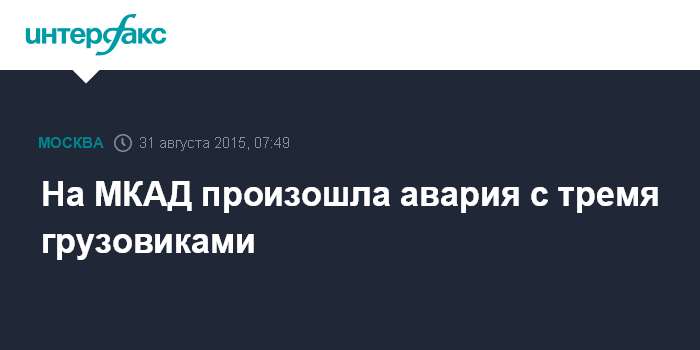 Москва. 31 августа. INTERFAX.RU - Автоавария с участием трех грузовиков произошла на северо-востоке Московской кольцевой автомобильной дороги (МКАД), тяжелые травмы получил один человек, сообщили "Интерфаксу" в управлении ГИБДД Москвы.