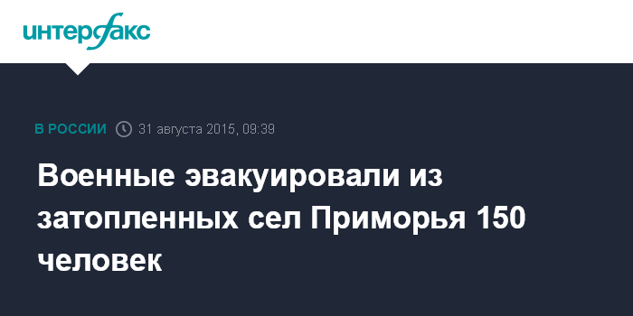 Москва. 31 августа. INTERFAX.RU - Инженерные подразделения Минобороны России оказывают помощь в эвакуации жителей подтопленных населенных пунктов Приморья.