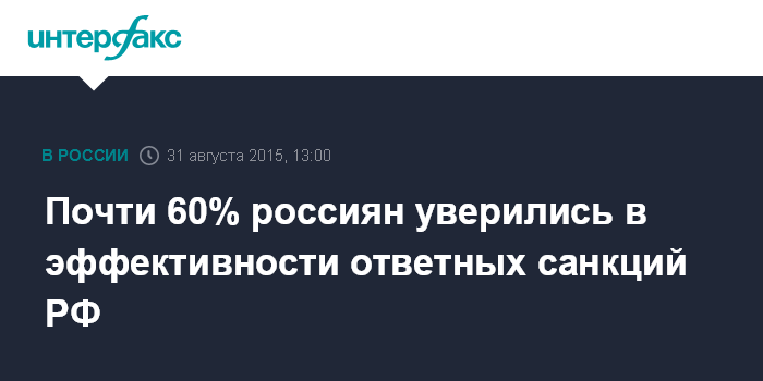 Почти 60% россиян уверились в эффективности ответных санкций РФ