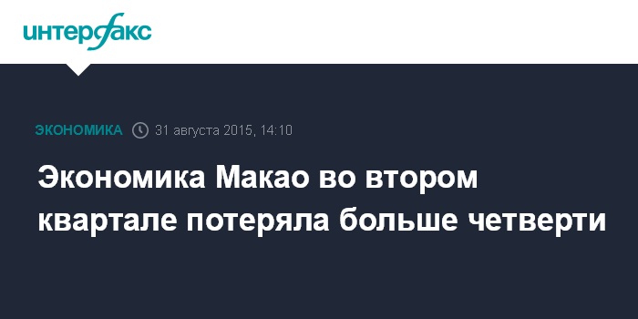 Москва. 31 августа. INTERFAX.RU – ВРП Макао сократился во втором квартале 2015 года на 26,4%, темпы падения ускорились с 24,5% в первом квартале из-за сокращения доходов казино, которые составляют около 80% экономики этого специального административного района Китая.