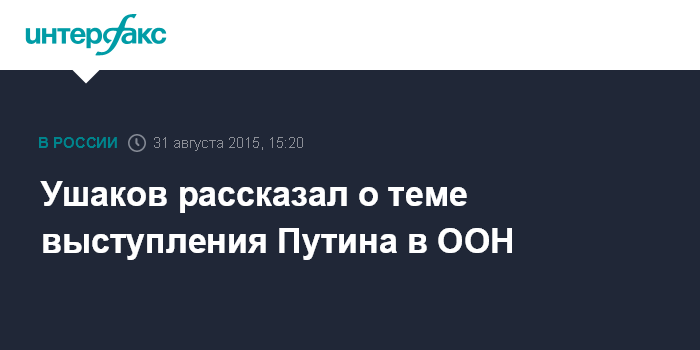 Москва. 31 августа. INTERFAX.RU - Президент РФ Владимир Путин в своей речи на сессии Генеральной Ассамблеи ООН обратится к вопросам международной политики, заявил помощник российского лидера Юрий Ушаков.