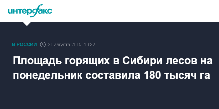 Москва. 31 августа. INTERFAX.RU - Площадь лесных пожаров в Сибири, по данным на понедельник, составляет 179 тысяч 377,7 га, на землях лесного фонда и особо охраняемых природных территорий зафиксировано 104 лесных пожара, сообщает департамент лесного хозяйства по Сибирскому федеральному округу.