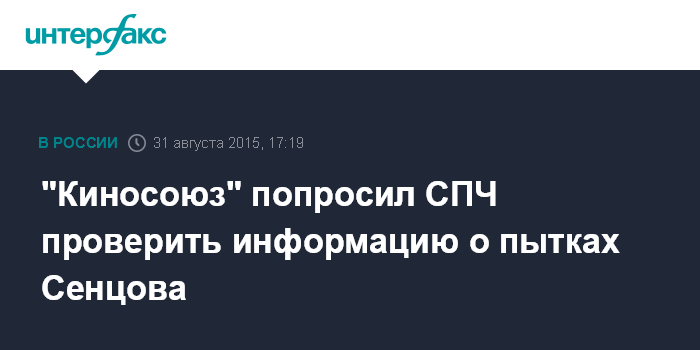 Москва. 31 августа. INTERFAX.RU - Свыше 300 деятелей искусства - режиссеров, сценаристов, актеров и журналистов - просят Совет при президенте РФ по развитию гражданского общества и правам человека (СПЧ) проверить информацию о применении пыток к украинскому режиссеру Олегу Сенцову, осужденному по делу о подготовке терактов в Крыму.