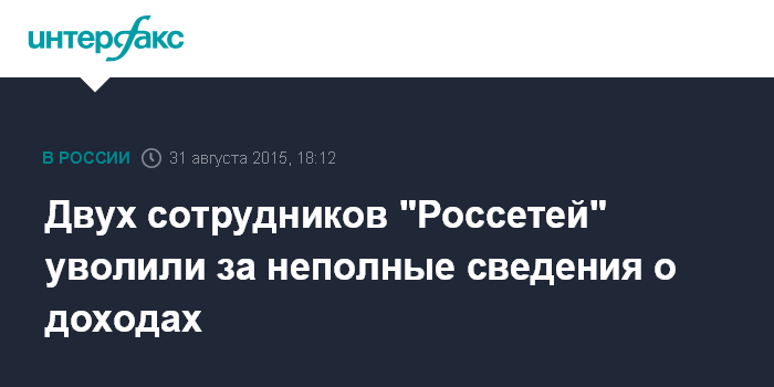 Двух сотрудников "Россетей" уволили за неполные сведения о доходах