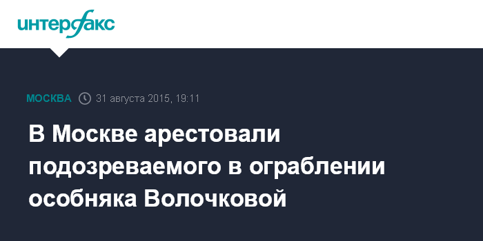 Москва. 31 августа. INTERFAX.RU - Суд в Москве по ходатайству следствия арестовал подозреваемого в разбойном нападении на дом балерины Анастасии Волочковой, сообщил "Интерфаксу" начальник пресс-службы московской полиции Андрей Галиакберов.