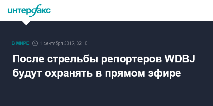 Москва. 1 сентября. INTERFAX.RU - После убийства в прямом эфире журналистки и оператора телеканала WDBJ руководство ужесточит правила безопасности для своих сотрудников, сообщает The Washington Times.