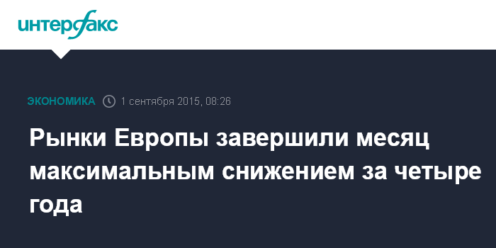 По итогам августа британский FTSE 100 продемонстрировал самое значительное падение с мая 2012 года - на 6,7%, DAX потерял почти 9,5%, CAC 40 - 8,5%. Для французского и немецкого рынков падение было максимальным с августа 2011 года.