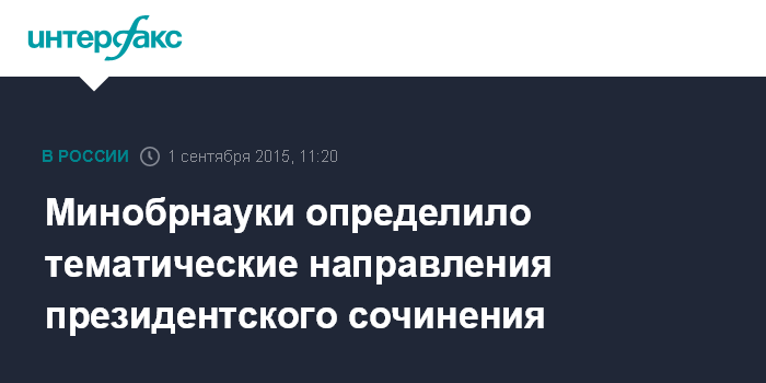 Москва. 1 сентября. INTERFAX.RU - Совет при Минобрнауки РФ определил пять тематических направлений итогового сочинения в школах в 2015-2016 учебном году, сообщает пресс-служба министерства.