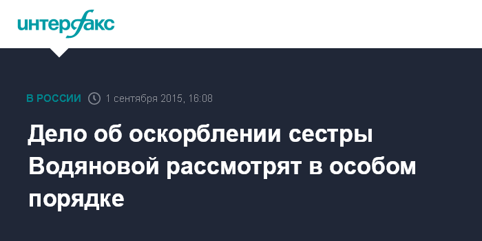 Дело об оскорблении сестры Водяновой рассмотрят в особом порядке