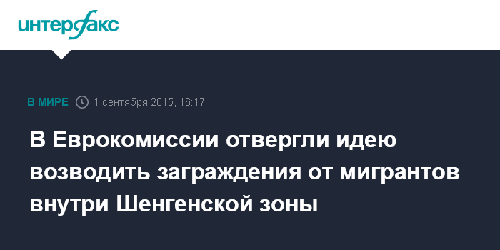 Москва. 1 сентября. INTERFAX.RU - Шенгенская зона не предусматривает наличия внутренних границ и не допускает возведения стен или сооружения проволочных заграждений между государствами-членами, заявила во вторник официальный представитель Еврокомиссии Наташа Берто.