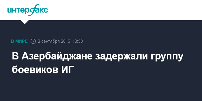 Москва. 2 сентября. INTERFAX.RU - Министерство национальной безопасности (МНБ) Азербайджана обезвредило группу граждан республики, участвовавших в боях в Сирии и Ираке на стороне террористической организации "Исламское государство" (ИГ), сообщает управление общественных связей МНБ.