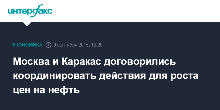 По его словам, на состоявшейся в Пекине встрече глав двух государств Владимира Путина и Николаса Мадуро "с двух сторон было отмечено, что падение цен на нефть не соответствует интересам двух стран и что, конечно, страны должны координировать свои усилия с тем, чтобы способствовать поощрению динамики на рост цен на нефть".