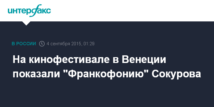 Официальная премьера "Франкофонии" состоится на острове Лидо в пятницу.