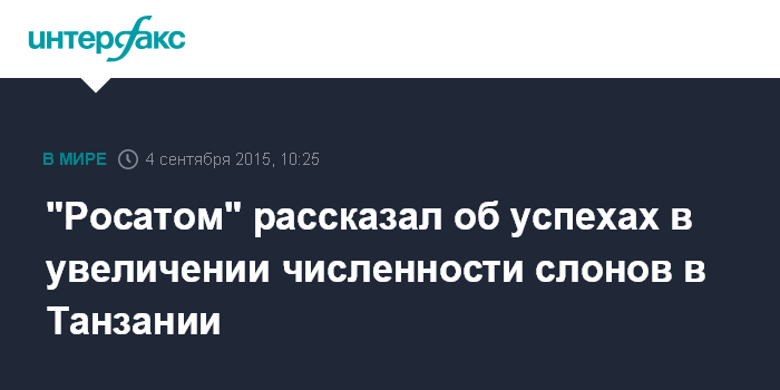 "Росатом" рассказал об успехах в увеличении численности слонов в Танзании