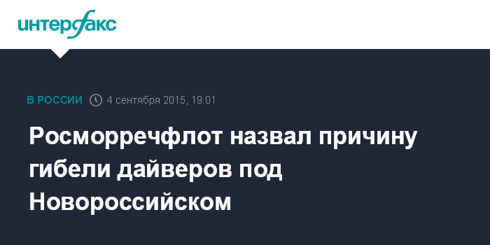 Москва. 4 сентября. INTERFAX.RU - Причиной гибели трех ростовских дайверов на затонувшем под Новороссийском линкоре "Свобода России", по предварительным данным, стало пренебрежение правилами техники безопасности при водолазных спусках, сообщила в пятницу Морская спасательная служба Росморречфлота России.