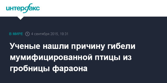 Ученые нашли причину гибели мумифицированной птицы из гробницы фараона