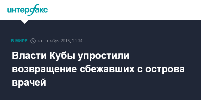 Москва. 4 сентября. INTERFAX.RU - Власти Кубы не будут наказывать врачей, которые ранее нелегально покинули территорию острова а теперь хотят вернуться на родину, говорится в заявлении кубинского министерства здравоохранения, распространенном в пятницу.