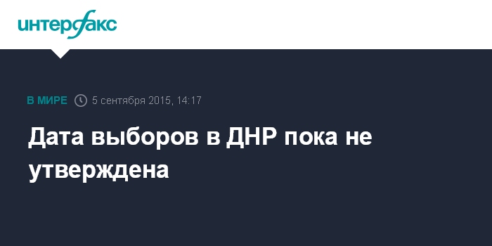 Москва. 5 сентября. INTERFAX.RU - В Центризбиркоме самопровозглашенной Донецкой народной республики не получали указаний о переносе сроков проведения местных выборов, однако их дата еще окончательно не утверждена.