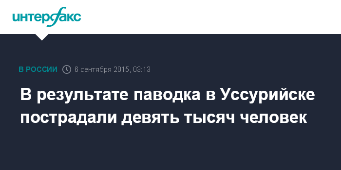Москва. 6 сентября. INTERFAX.RU - Власти Уссурийского городского округа продолжают подсчитывать ущерб от прошедшего паводка, вызванного тайфуном "Гони ".