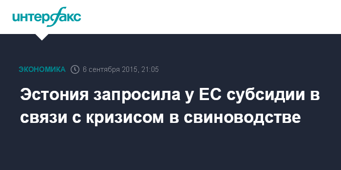 Москва. 6 сентября. INTERFAX.RU - Mинистр сельской жизни Эстонии Урмас Круузе направил уполномоченному Еврокомиссии по сельскому хозяйству Филу Хогану письмо с просьбой о чрезвычайных методах помощи для смягчения ситуации в свиноводческом секторе Эстонии. Об этом пишет BNS.