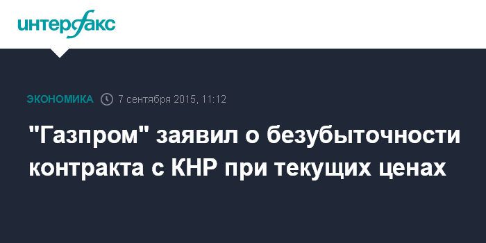 "Газпром" заявил о безубыточности контракта с КНР при текущих ценах