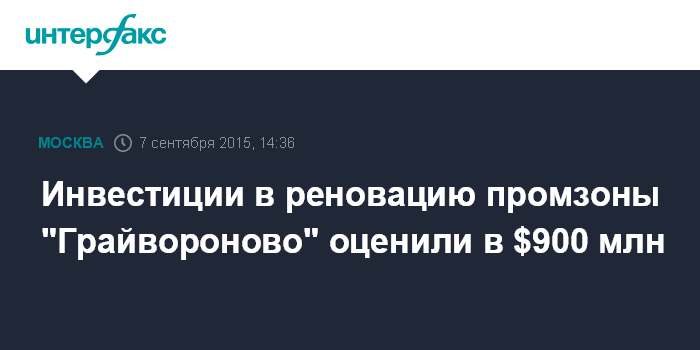 Москва. 7 сентября. INTERFAX.RU - Общий объем инвестиций в развитие территории бывшей промзоны "Грайвороново" на юго-востоке Москвы составит около $900 млн, сообщил журналистам в понедельник генеральный директор компании "ПСН-Групп" (девелопер проекта) Максим Гасиев.