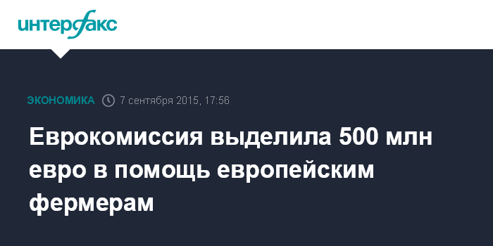 "Мы приняли решение немедленно направить 500 млн евро из средств ЕС на помощь фермерам, - говорится в заявлении заместителя председателя Еврокомиссии по вопросам инвестиций Юрки Катайнена, размещенном на сайте ЕК. - Этим решением мы демонстрируем, что серьезно относимся к своим обязанностям по поддержке фермеров и готовы поддержать их соответствующими финансовыми средствами".