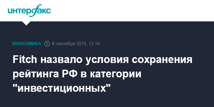 Fitch назвало условия сохранения рейтинга РФ в категории "инвестиционных"
