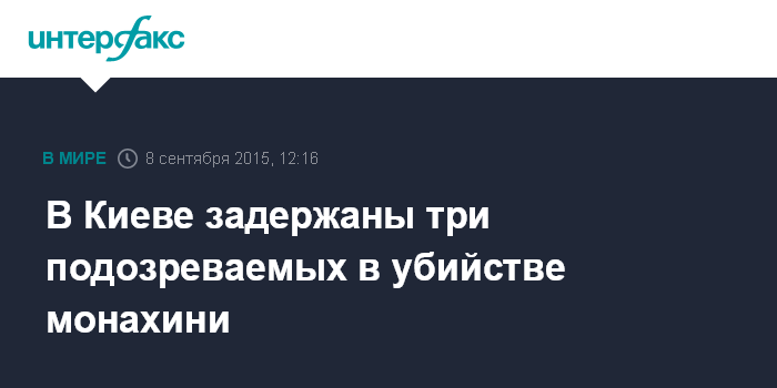Москва. 8 сентября. INTERFAX.RU - Правоохранители задержали троих подозреваемых в убийстве 64-летней насельницы Флоровского Вознесенского монастыря Киева инокини Алевтины.