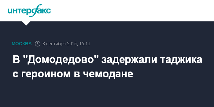 Москва. 8 сентября. INTERFAX.RU - Сотрудники Домодедовской таможни задержали гражданина Таджикистана, пытавшегося ввезти почти 700 граммов героина в чемодане, сообщили "Интерфаксу" в пресс-службе ФТС РФ.