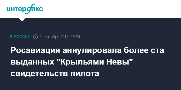 Москва. 8 сентября. INTERFAX.RU - Росавиация по представлению следователей аннулировала более сотни свидетельств пилотов в рамках многоэпизодного уголовного дела о подкупах в петербургском авиационном учебном центре "Крылья Невы".