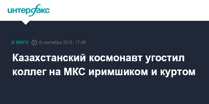Москва. 8 сентября. INTERFAX.RU - Членам экипажа Международной космической станции попробовали блюда национальной казахской кухни, которые привез на орбиту космонавт из Казахстана Айдын Аимбетов.