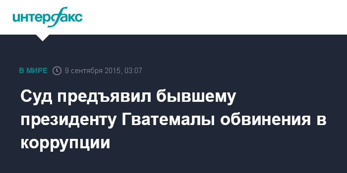 Москва. 9 сентября. INTERFAX.RU - Суд Гватемалы предъявил бывшему президенту страны Отто Пересу Молине обвинения в коррупции и вымогательстве, сообщила в среду BBC News.