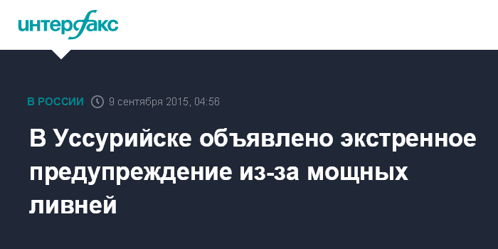 Москва. 9 сентября. INTERFAX.RU - Администрация Уссурийского городского округа распространила в среду экстренное предупреждение в связи с ожидаемым подходом циклона в Приморье.